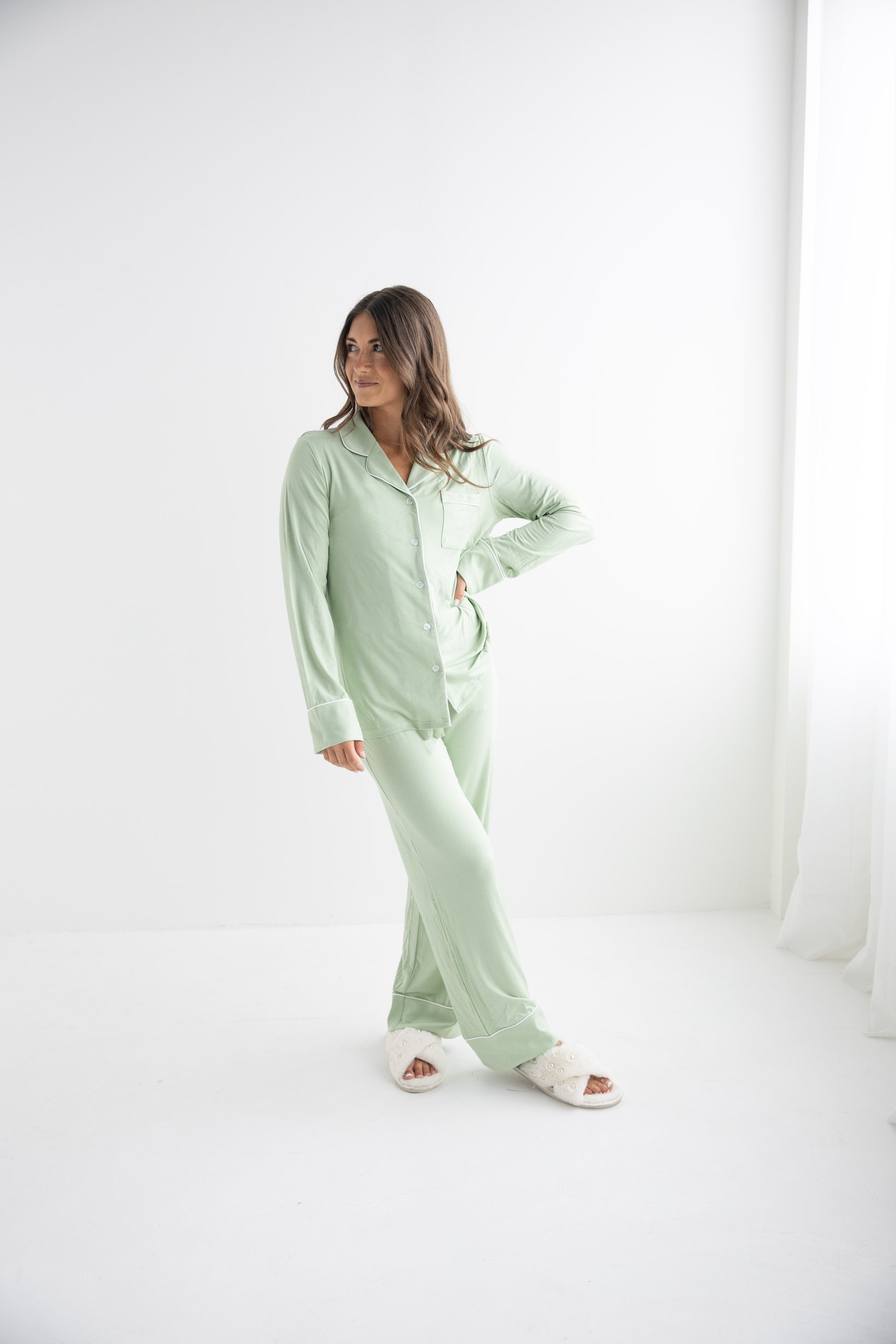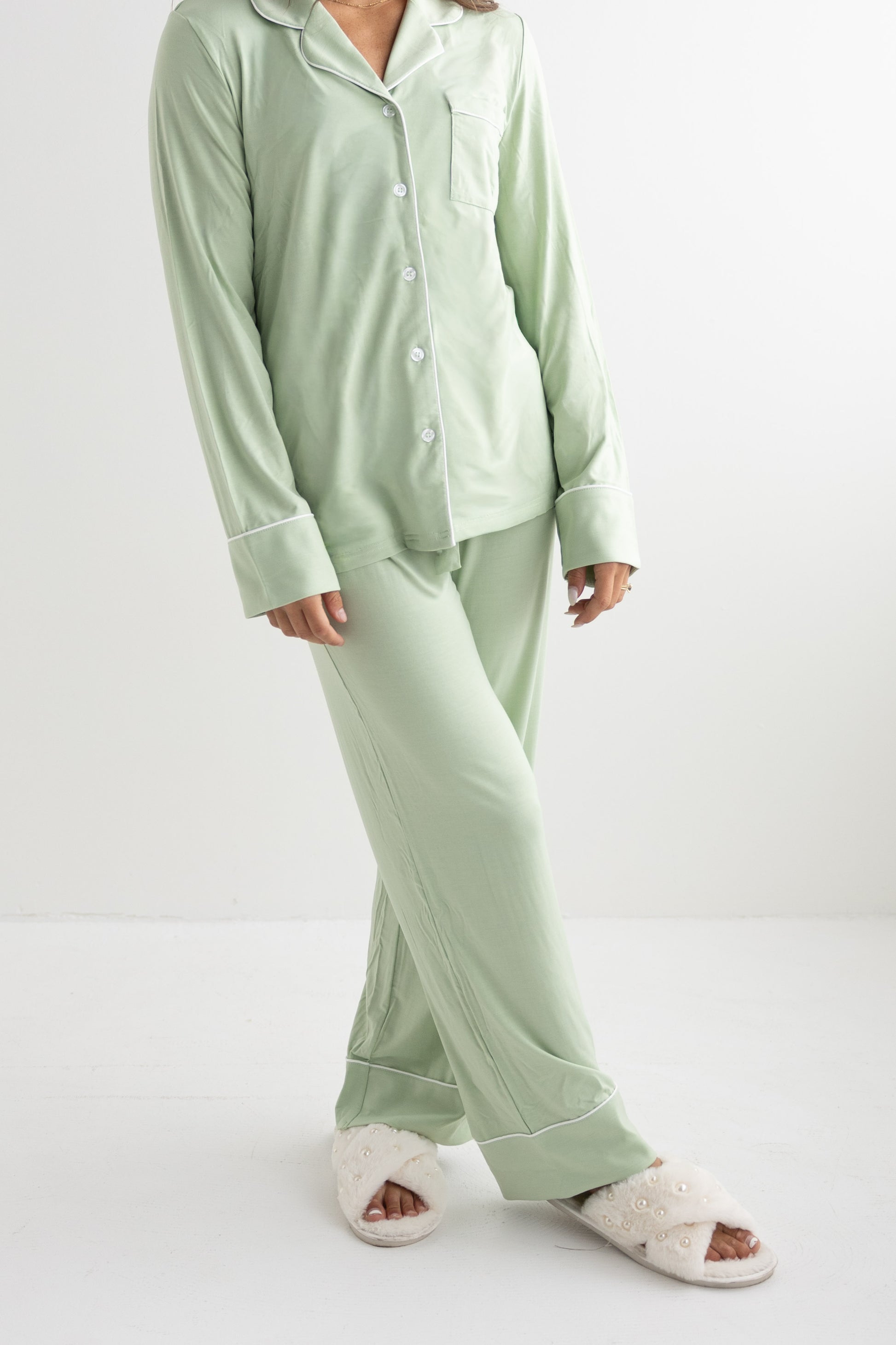 Made from sustainable bamboo fabric, our pajama sets are not only gentle on your skin but also on the environment. The luxurious feel of bamboo material adds a touch of luxury to your bedtime routine. Treat yourself or a loved one to a good night's sleep in our irresistibly soft and stylish pajama sets. Stilla Sets will be sure to become your go-to favorites for a cozy night in.